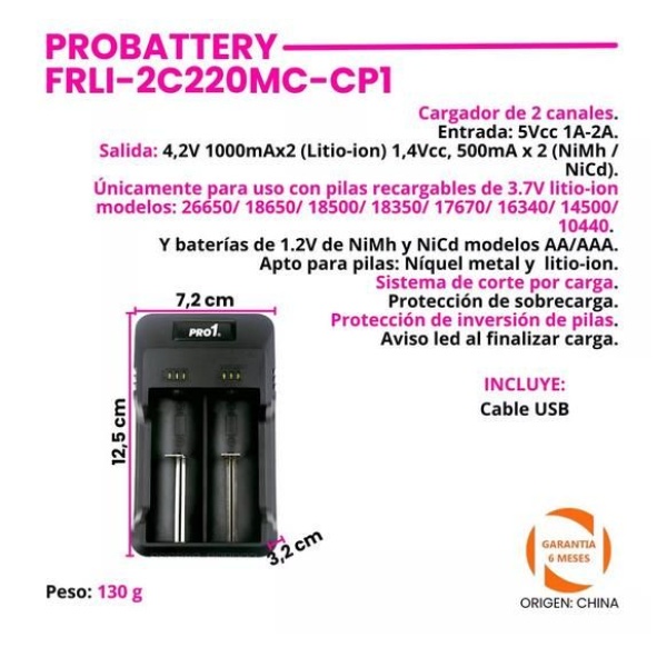 Cargador De Pilas Probattery Pro1 Multiple 2(Bat)4 Canales Aa/Aaa Nimh-Nicd (Frli-432-Cp1)