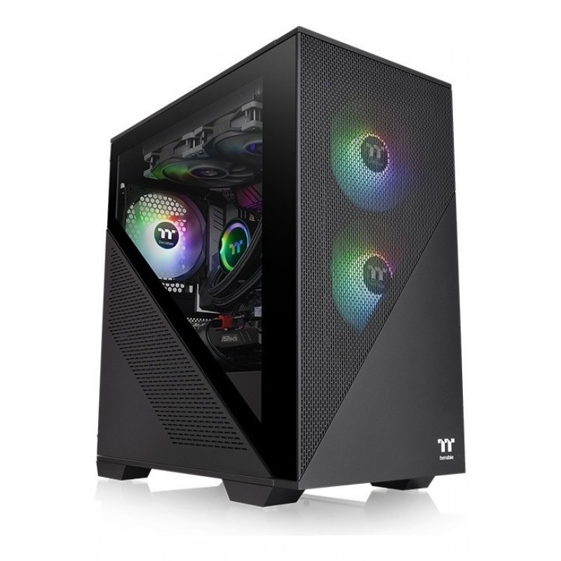 Gabinete Gamer Thermaltake Divider 170 TG ARGB: Panel lateral dividido con vidrio templado y ventiladores ARGB de serie.