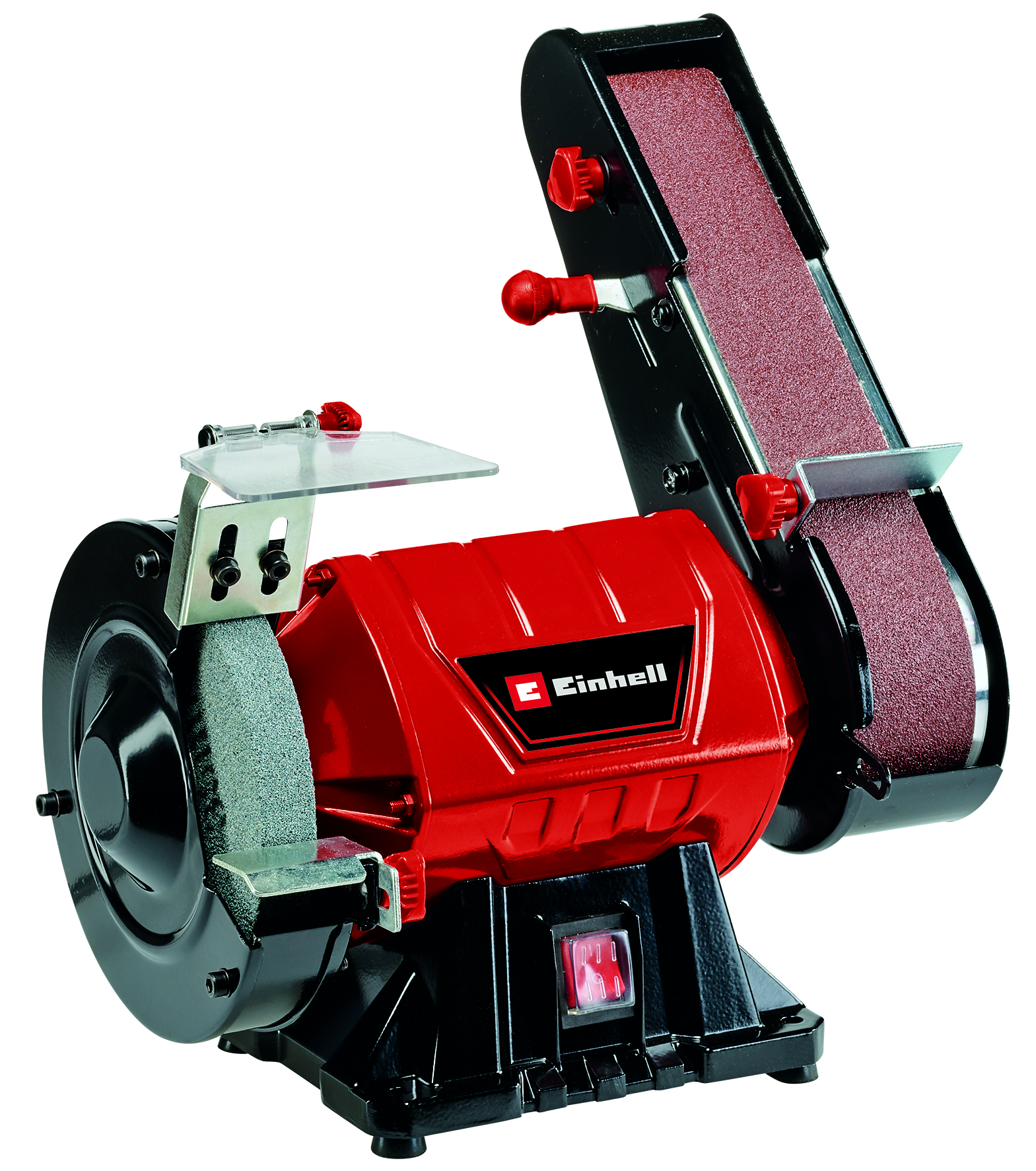 Potencia máx. 350 W – 30 min, Revoluciones por minuto 2980 min-1, cristal de protección contra chispas, incl. muela abrasiva gruesa G36 + cinta abrasiva G80. Eje montaje de 12.7 mm, Muela de 150 x 32 mm. Cinta de lijado de 686 mm x 50 mm.. Código: 4466154