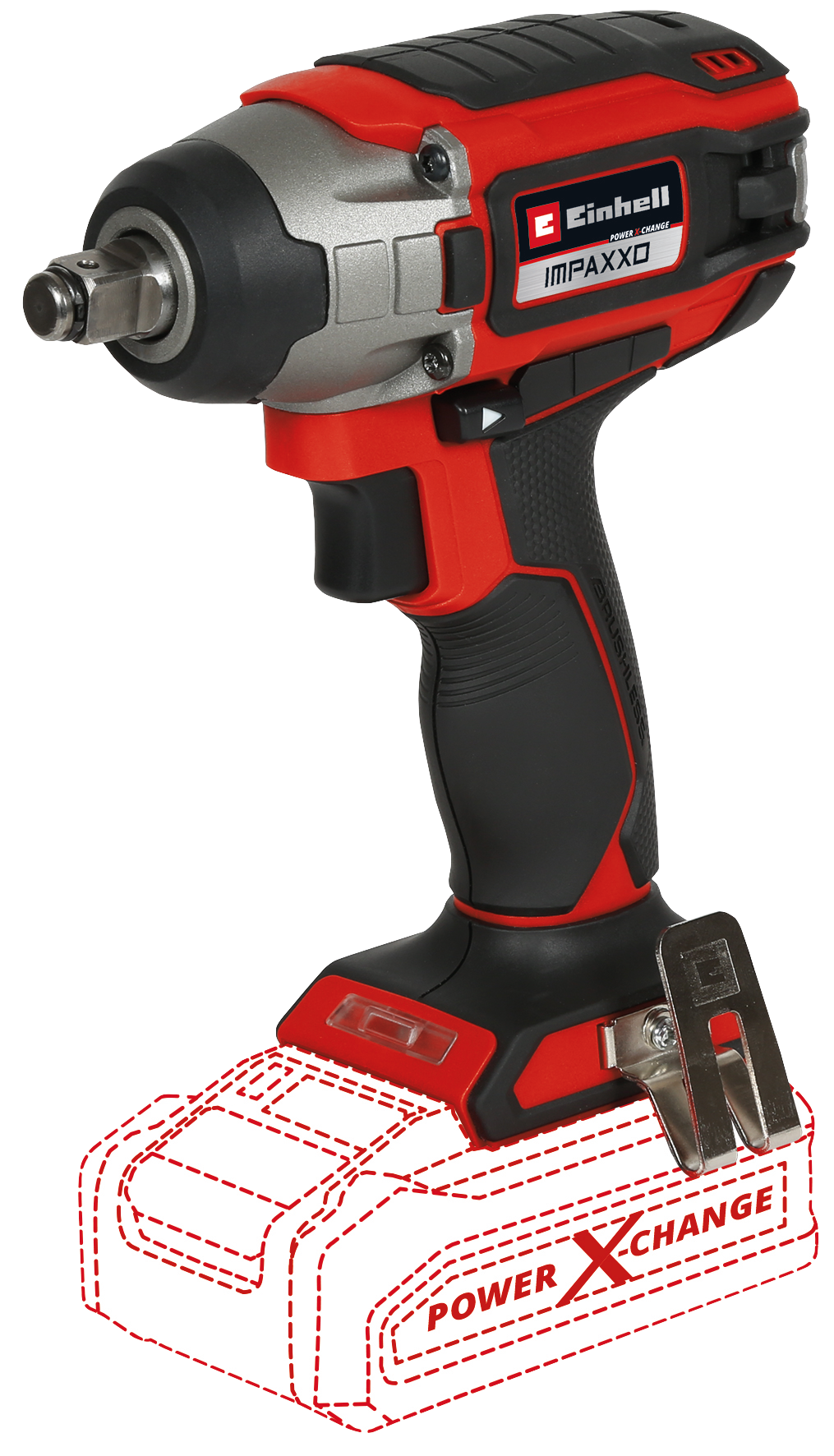 Familia Power X-Change, 18V. Motor sin escobillas. Llave de impacto. Electrónica de velocidad finamente ajustable para trabajos sensibles. Incluye luz LED. Función de parada rápida. Clip para cinturón. Incluye adaptador de broca para usar con brocas de tornillo. Torque 230 Nm – 3000 golpes por minuto. Código: 4510080