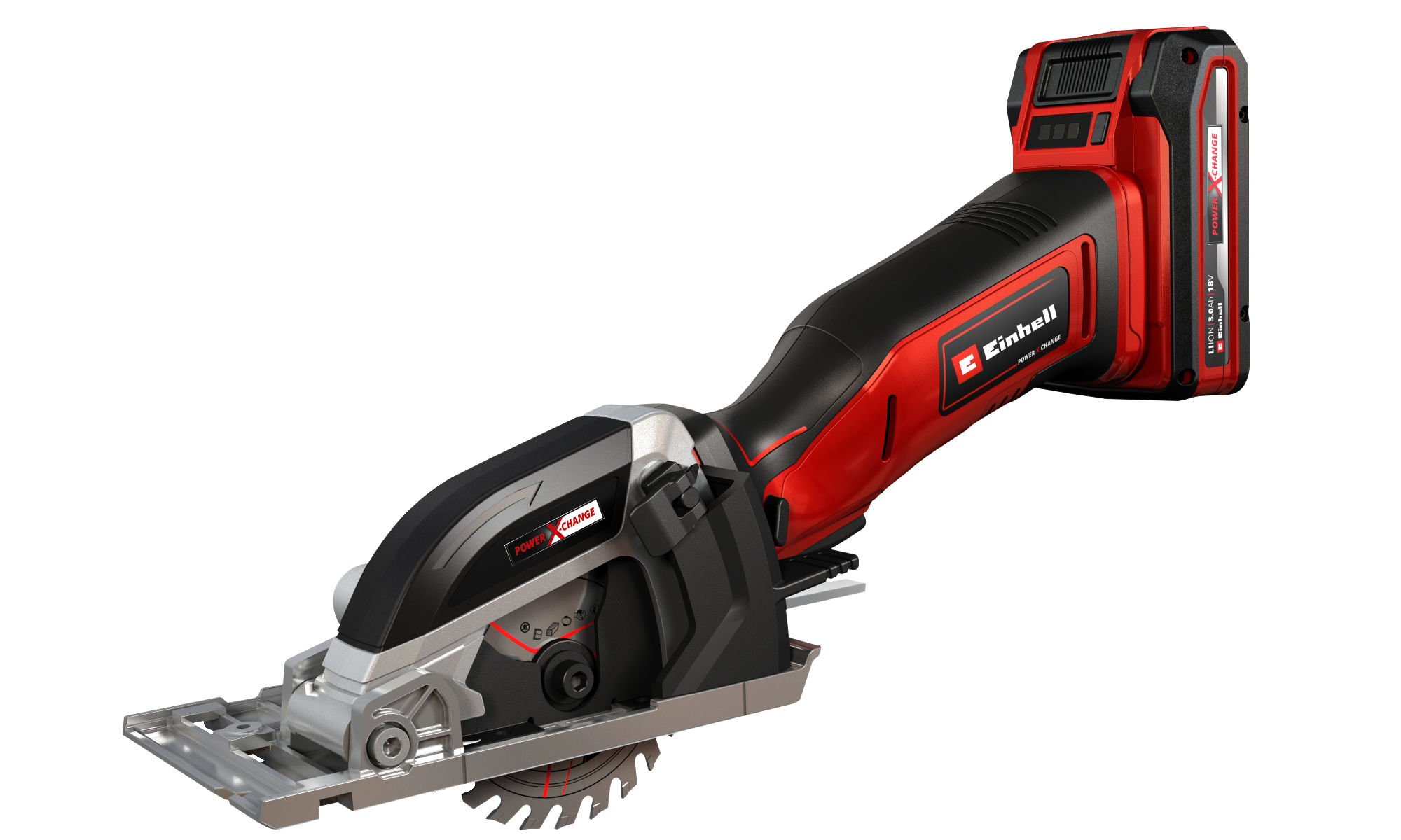 Batería compatible con Power X-Change-Motor Brushless-Ajuste sencillo, sin herramientas de la profundidad de corte-Cambio sencillo de la hoja de la sierra -Profundidad de corte máx. de 8 mm -Adaptador para el aspirador de polvo-Mesa de sierra de alta calidad de aluminio-Tope paralelo-. Código: 4331100