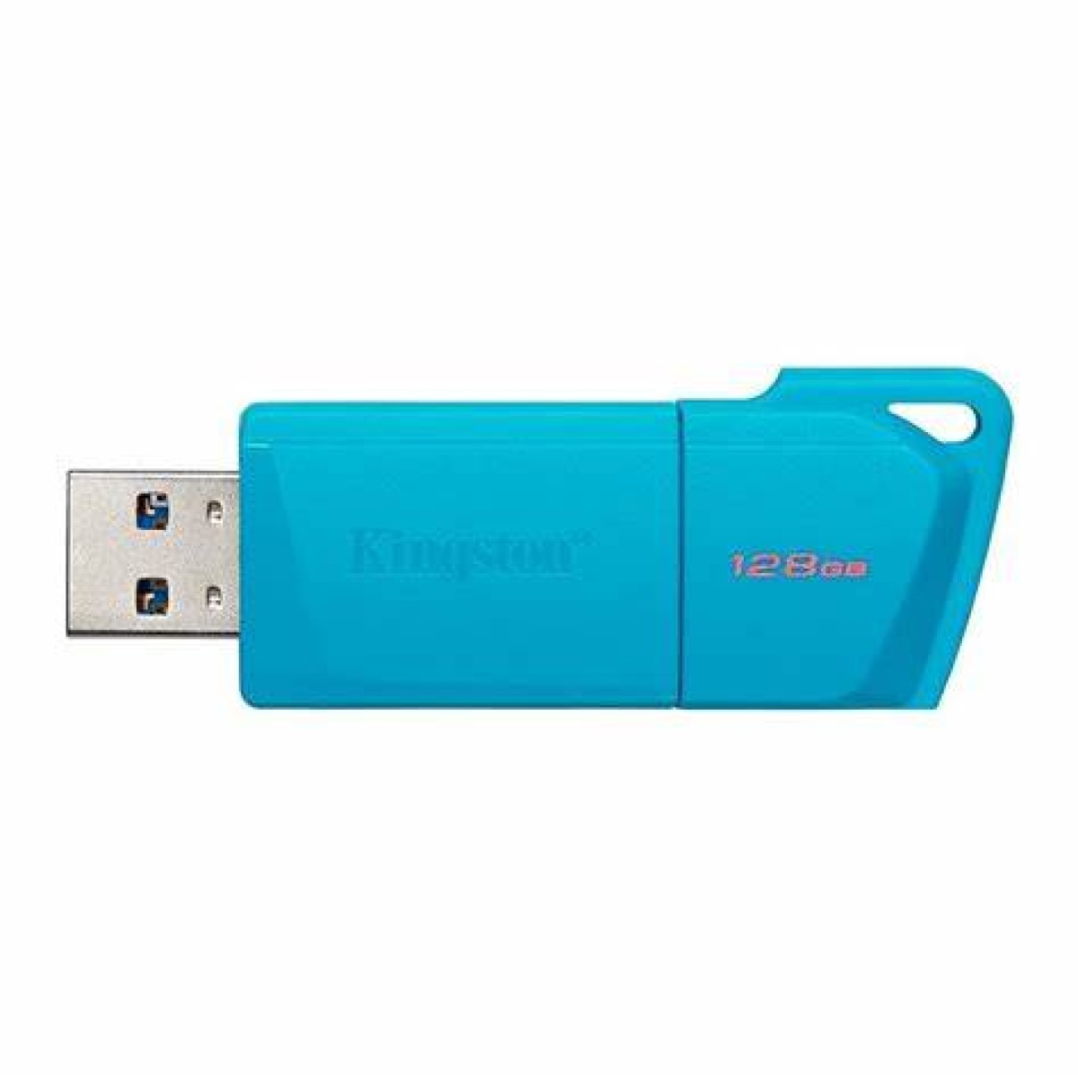 Pendrive USB Kingston DataTraveler Exodia M de 128GB en color Aqua Blue, USB 3.2, modelo KC-U2L128-7LB, ofrece almacenamiento confiable y transferencia veloz con un diseño llamativo.